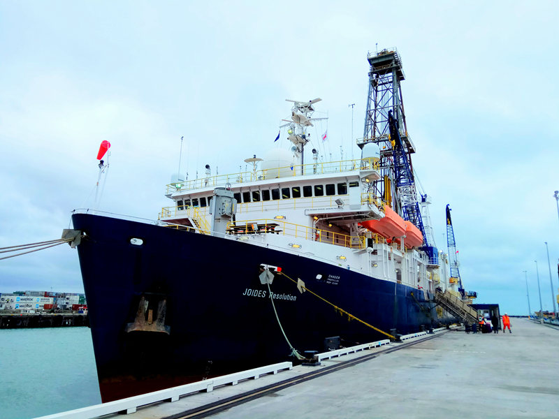 2018年3月-5月参加国际大洋发现计划,停泊于新西兰Timaru港口的决心号
