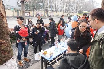 二零一七年三月五号,成人抖音 的同学们在鼓楼校区参与了雷锋日活动。因活动要求各参与的单位拟定自己的主题,成人抖音 从专业相关考虑,选定了“3·5雷锋日——空瓶回收,变废为宝”这一主题,旨在告以人们废旧塑料瓶难以得到及时的处理进而对海洋生物的损害、宣传同学们针对这一现象而想出的应对方式。成人抖音 的活动将使用过的塑料瓶、易拉罐等重新改造成为一件件精美的工艺品和实用品。如用塑料瓶做成的小乳猪、易拉罐瓶改造成的凤凰,还有各种盆栽,挂饰之类。生动的活动吸引了许多路人驻足观赏,志愿者们则很热心的为路人讲解如何将废品变废为宝并且教授参与者如何制作塑料工艺品。活动过程中,校领导和院领导也来视察,赞扬了同学们勤俭质朴的雷锋精神。