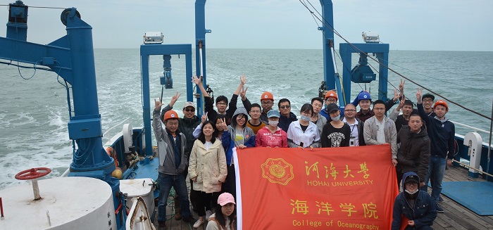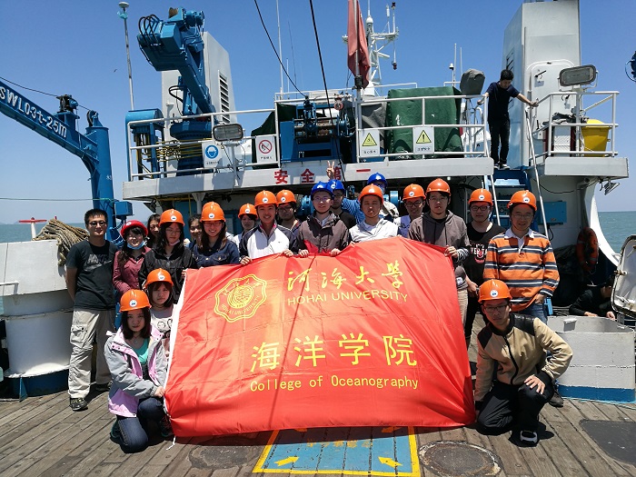 2017年5月13日-21日,2014级海洋科学1班全体同学在教师吴祥柏、王涛和王毛毛的带领下,在长江口附近海域展开了为期一周的综合海洋调查实习。目前师生已经完成海上观测并于21日顺利返回南京。同学们正在紧张分析出海观测到的数据,分组按照要求完成航次调查报告。