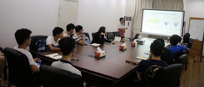 8月26日下午,中国科学院南海海洋研究所李根副研究员受邀到成人抖音 进行学术交流,分别做了题为“A robust but spurious pattern of climate change in model projections over the tropical Indian Ocean”和“Does a warmer climate really mean a wetter Indian summer monsoon?”的学术报告。报告由成人抖音 院长齐义泉主持,学院20余名师生参加了本次报告。