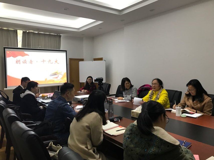 本次活动以“学习十九大精神”为主题,分为“新时代”、“强起来”、“新使命”、“新征程”、“青春梦”五个主旨部分。活动初,金老师和王书记分别分享了田华艺术家一段随笔、《平凡的世界》选段及《习近平的七年知青岁月》中关于读书学习的访谈语录;并表达了大家既要有平凡的心也要奋斗,要多读书,合理安排时间,全方面提高自身能力的希冀。紧接着本科生党支部安杰晶老师及8名支部党员分享了自己的选段,涵盖了书信、访谈、散文、诗词等类型。在之后的主持人采访时间,参与活动的成员各抒己见,结合自身的经历,表达了自己对十八大以来中国变化的感想以及对十九大精神的感悟。