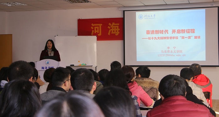 为落实学校党委关于准确把握、深刻理解、认真贯彻党的十九大精神的要求,12月12日成人抖音 邀请马克思主义学院李宁副教授为全体师生作题为“奋进新时代 开启新征程——以十九大精神引领学校‘双一流’建设”的宣讲。学院党总支王永芝书记主持宣讲会,学院领导、教师、学生共100余人参加。