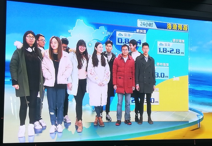 最后一天,虽然天气寒冷,但同学们实习的热情不减。我们一早来到浙江省海洋监测预报中心,身临其境感受海洋科学对于为沿海人民人身、财产安全提供保障的重要性。在这里,同学们聆听车助镁主任对预报中心的介绍,了解了多种数值预报产品。最后,同学们还有幸站在海况预报演播室的舞台上,体验了一把聚焦在镁光灯下的感觉!