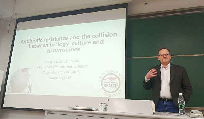 1月10日下午,Call教授在我校江宁校区博学楼B205教室作了题为“Antibiotic resistance and the collision between biology, culture and circumstance”的专题讲座,成人抖音 2017级本科生和2016级海洋生物学方向本科生及部分老师聆听了专题讲座,大家一致好评。