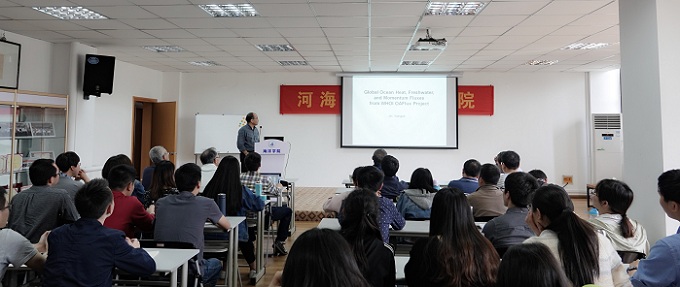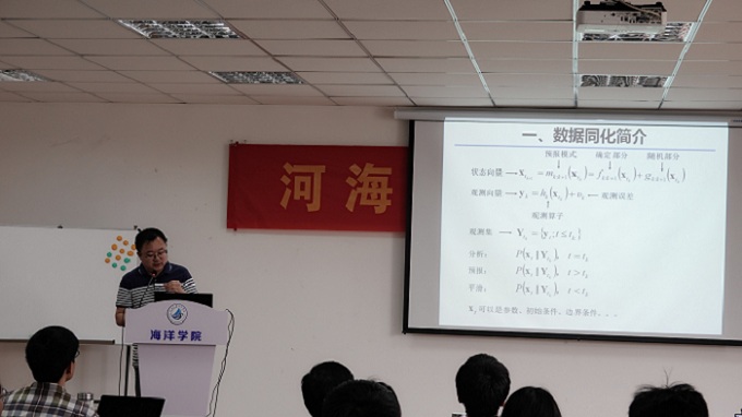 2018年4月2-3日,成人抖音 的海洋观测与数据同化研讨会在507会议室成功举办。美国伍兹霍尔海洋研究所黄瑞新教授、金向泽副教授,中国海洋大学刘秦玉教授,哈尔滨工程大学何忠杰教授,中国科学院大气物理研究所林一骅研究员,国家海洋局国家海洋信息中心吴新荣研究员、张学峰研究员、付红丽副研究员及广东海洋大学李敏博士等国内外海洋观测与数据同化领域的专家和学者,以及成人抖音 60余名师生们参加了本次会议。会议由成人抖音 院长齐义泉主持。