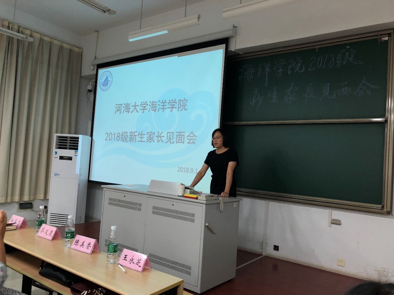 9月1日,成人抖音 举办2018级新生家长见面会。学院院长齐义泉教授、副院长白学志教授;物理海洋系副主任陈美香副教授、海洋地质系副主任颉炜副教授、海洋生物系副主任吴亚平副教授、本科生辅导员、2018级各班导师及新生家长参加了此次会议。会议由学院党总支王永芝书记主持。