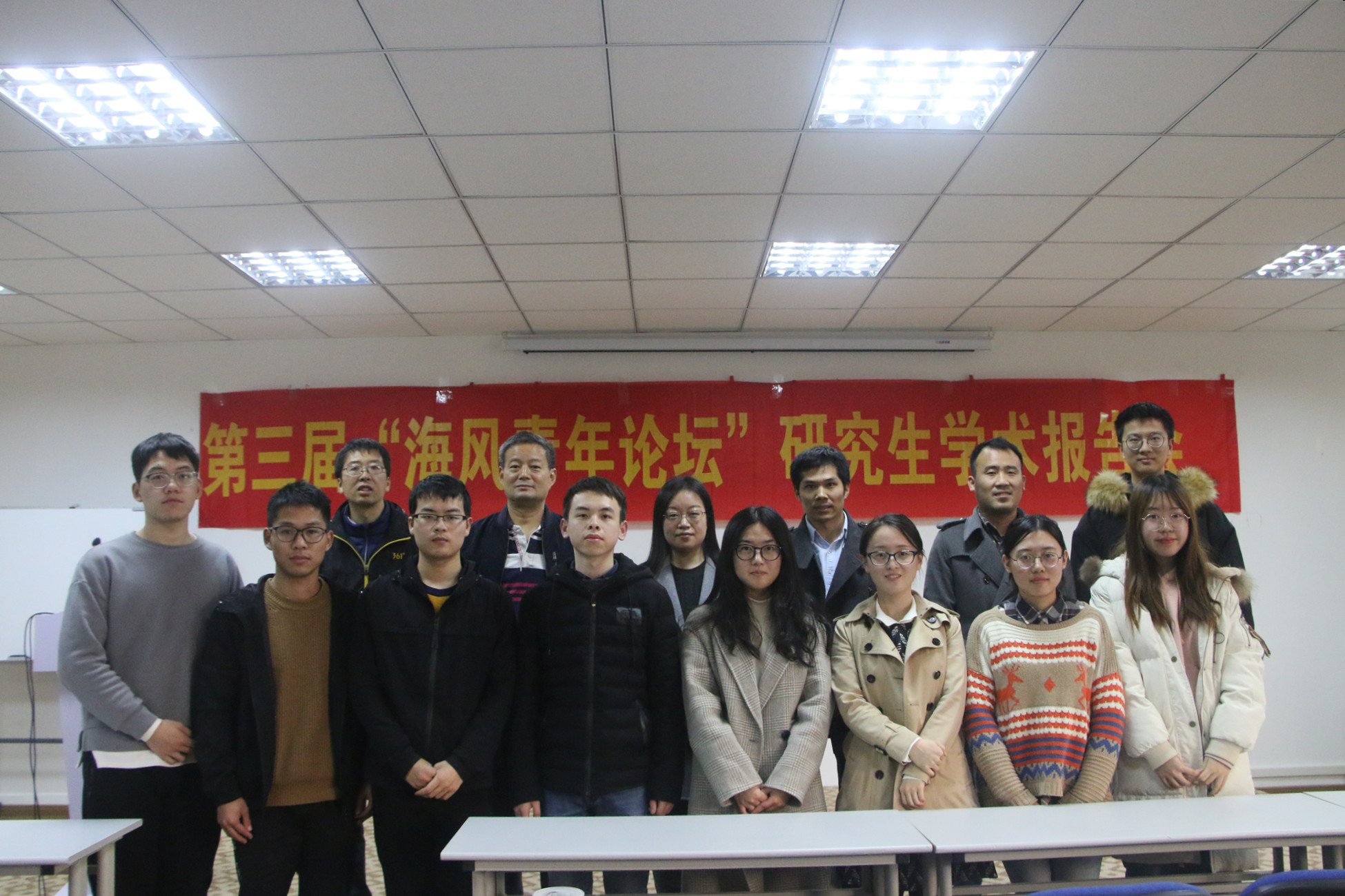 “海风青年论坛”以服务研究生学术、科学研究为宗旨,鼓励同学们将个人参与的科研项目和科学研究情况予以汇报和分享交流。作为一个展示自我、锻炼自我、完善自我的平台,本次学术报告会吸引了来自学院不同专业研究生同学的积极参与。在汇报过程中,同学们思路清晰、语言流畅,每位同学的讲解都各有千秋,异彩纷呈,得到了评委老师的肯定。同时,评委老师从报告内容、PPT制作、创新度等多方面进行了中肯地点评,对每位参赛同学在科研中遇到的问题,给予了宝贵的意见和建议。