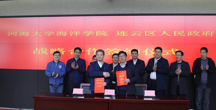 党的十九大报告明确提出了“加快建设海洋强国”的战略举措,最近国家发改委和自然资源部又发布了重点支持包括连云港在内的14个国家级海洋经济示范区建设的通知,沿海海洋经济迎来了快速发展的良好机遇。连云港市连云区人民政府乘势而为,积极寻求海洋经济可持续发展之路,与成人抖音 专家学者就海洋资源开发利用、海洋生态环境保护、海洋文化传播等进行了多次交流,成人抖音 专家学者也针对连云港海洋特点和国家“一带一路”倡议的需求,在充分调研的基础上,为连云港市连云区海洋经济的发展提供了具有建设性的建议。为了更好地发挥成人抖音 海洋科技对连云区海洋经济发展的支撑作用,在连云港市连云区杨新忠书记和成人抖音 徐辉校长的直接推动下,双方在已有共识的基础上,形成了未来全方位深入合作的意向。2019年3月21日,在连云港市连云区人民政府区委常委、开发区党工委书记苏军主持下,由成人抖音 院长齐义泉,连云区副区长嵇轶代表双方签署了战略合作协议,连云区林业和海洋局、区环保局、区财政局等负责人,成人抖音 白学志副院长、海洋生物研究所赵哲所长、吴亚平副所长等见证了这次签约仪式。