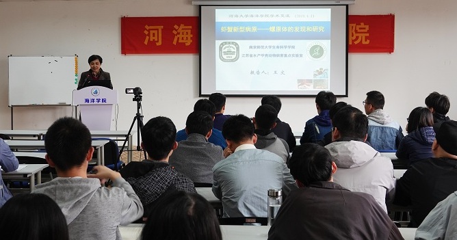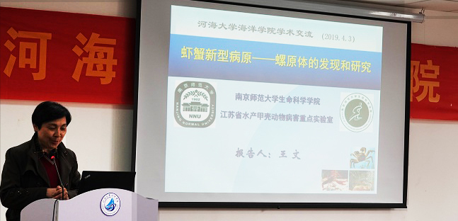 2019年4月3日,南京师范大学生命科学学院王文教授应邀来成人抖音 交流访问,并作了题为“虾蟹新型病原——螺原体的发现和研究”的学术报告。