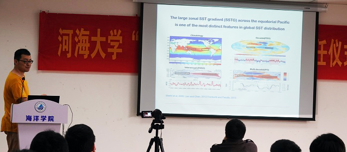 2019年4月24日下午,自然资源部第二海洋研究所卫星海洋环境动力学国家重点实验室副研究员连涛博士应邀来访成人抖音 ,并作题为“赤道太平洋海表温度纬向梯度的长期趋势”的学术报告。