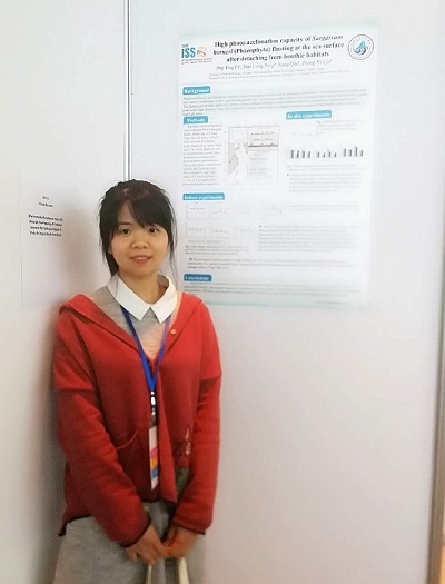 海洋生物系李晶晶老师参加了此次讨论会,提交摘要题目为“铜藻对环境变化的适应性”,主要探讨铜藻脱底栖后对复杂海面环境的适应能力及适应策略,分析影响铜藻形成大面积漂浮群体(金潮)的主要生物及非生物因素。漂浮海藻的组成,成因及演替得到研究者极大的重视,在多个分会场都有相关报告,包括藻潮(Algal bloomimg),海藻与气候变化(Seaweed and climate change),气候变化与海洋酸化(Climate change and ocean acidification),气候变化下的海藻分布变动(Climate-driven changes in seaweed species distribution)等。会议期间,李晶晶老师在这些分会场与参会的研究者进行了深入的讨论与交流,并介绍了成人抖音 相关方向的研究及最新研究成果等,为今后合作研究提供了积极的帮助。(供稿人:李晶晶;审稿人:王永芝)
