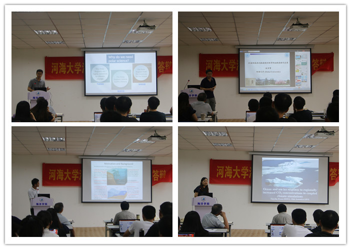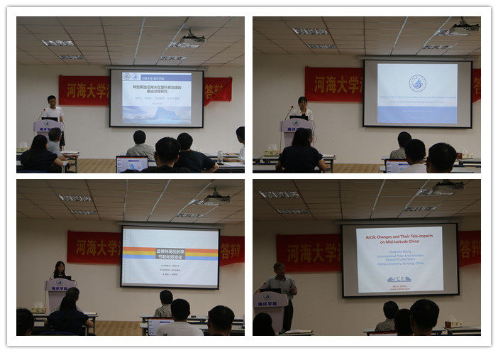 研讨会主要围绕南北极大气、海洋及地质环境进行了研讨。有关北极的报告主要包括环北冰洋沉积盆地地质特征及矿产资源前景,耦合气候模式中北极海洋海冰对CO2增加的响应情况,楚科奇海附近水团性质变化和输运情况,波弗特高压的季节和年际变化,以及北极变化及其对中国的影响。有关南极的报告主要包括南极底层水数值模拟,观测数据中的南极普里滋湾潮流场特征,埃默里冰腔内能量循环,CMIP5模式中南大洋风应力的评估,东南极冰架底部融化机制介绍,以及海水冰点与压力的关系等。