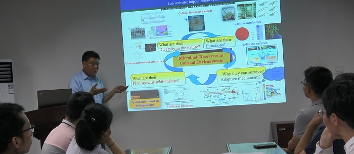 2019年7月9日,中山大学生命科学学院李文均教授受邀访问成人抖音 ,并在海洋科学实验中心会议室作题为“微生物多样性研究的机遇和挑战”的学术报告。我校环境学院、水文水资源学院及成人抖音 的相关师生参加了此次学术报告。