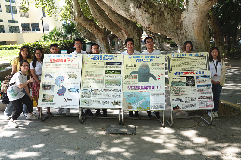 科普宣传周系列活动之一,主要通过展板展示,志愿者讲解,发放传单的形式,向全校师生科普有关江豚的知识,介绍其因捕捞、水污染、栖息地被破坏等濒临灭绝的严峻处境,并号召大家要科学放生,不能破坏长江原有的生态环境,借此为保护江豚贡献自己的一份力量。