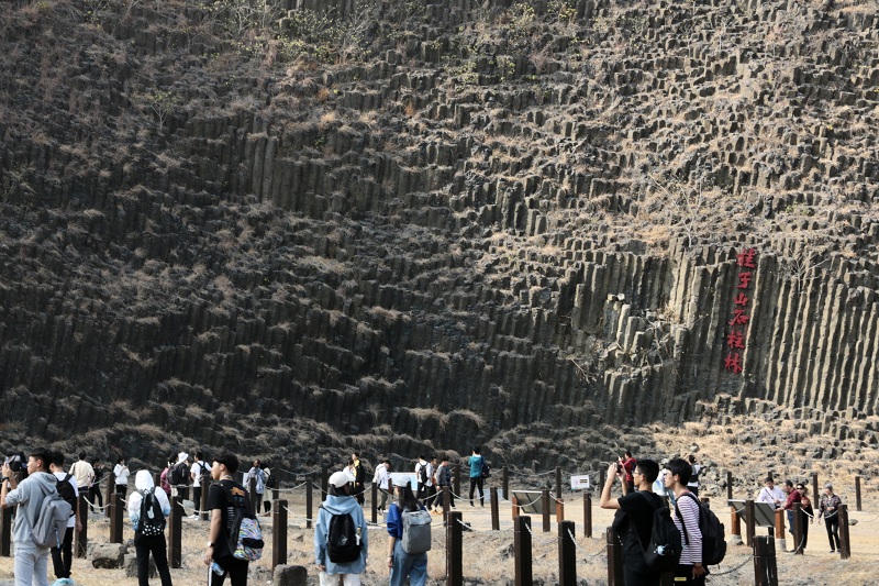 11月3日上午,同学们首先抵达了方山国家地质公园,指导教师讲解了古火山机构的特征、玄武岩的气孔构造及成因以及如何区分火山岩和次火山岩等问题。