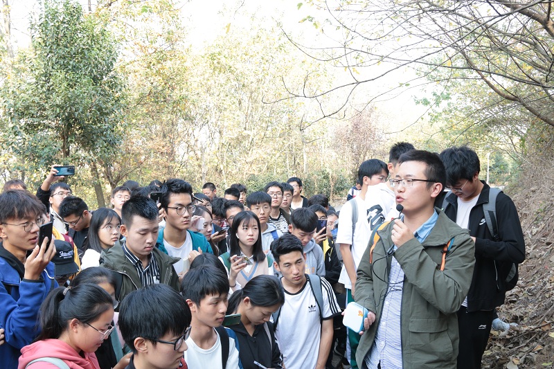成人抖音 2019级本科生在海洋地质系张传林、王腾、吴峰、谈明轩、张慧超和2019级辅导员金颖6位老师的带领下,于2019年10月27日和11月3日两天,前往南京市栖霞山、方山国家地质公园、桂子山国家地质公园和石头城遗址公园进行地球科学认知实习。