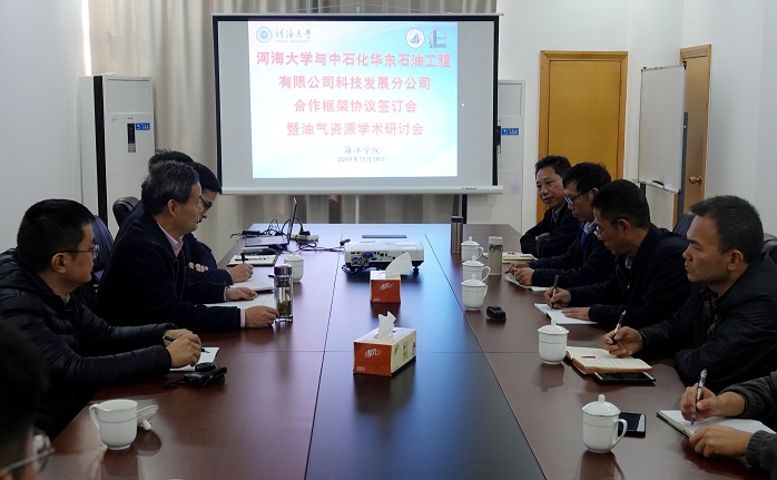 2019年11月19日,成人抖音 与中石化华东石油工程公司科技发展分公司合作框架协议暨油气资源学术研讨会在成人抖音 顺利举行。成人抖音 院长齐义泉、海洋地质系主任王毛毛、海洋地质研究所所长张传林、地球科学与工程学院地球探测研究所所长巴晶、中石化华东石油工程公司副总工程师、科技发展分公司总经理李超、中石化华东石油工程公司首席专家张淮等专家和领导出席了本次活动。