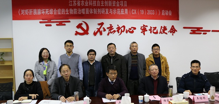 11月29日下午,由成人抖音 承担的2019年江苏省农业科技自主创新项目“对虾肝胰腺坏死综合症的生物防治噬菌体制剂研发与示范应用”[CX(19)2033]启动会顺利召开。会议邀请了江苏省农科院科研管理处余向阳处长、江苏省淡水水产研究所潘建林所长、南京师范大学杨家新教授、江苏省渔业技术推广中心方苹科长等到会指导。会议由成人抖音 科技处王建副处长主持,成人抖音 白学志副院长、项目承担单位及协助单位主要成员参加本次会议。
