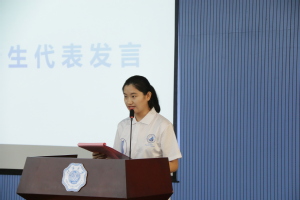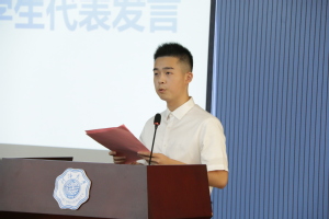 接下来是成人抖音 18级本科生钱星赏同学的发言和2020级新生代表李佳洋同学的发言。在钱星赏学长的演讲中,讲述大学与高中的区别,对如何适应大学生活,如何平衡工作与学习之间的关系给出了建议,寄语新生同学们要不忘初心。学长的建议让2020级新生受益匪浅。新生代表李佳洋同学的发言生动而真诚,体现了作为一个萌新对大学学习生活的憧憬和对海洋科学专业学习的向往。