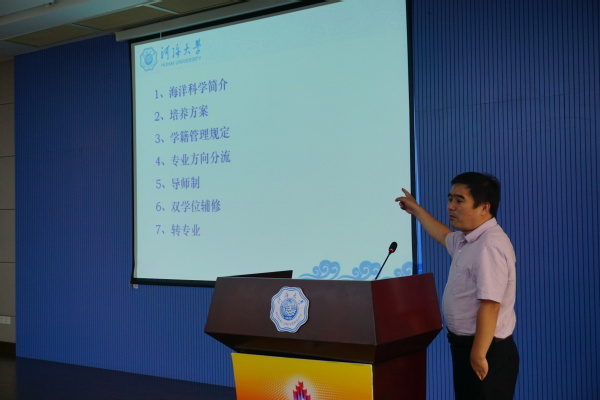 随后,副院长白学志老师上台介绍本科生教学情况,海洋科学专业很丰富,很庞大。白学志老师的介绍使新生对成人抖音