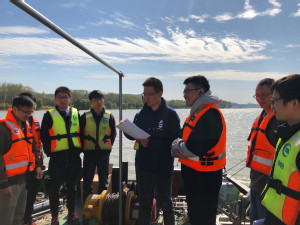 出于疫情期间安全考虑,本次实习在长江南京市段完成。本河段属于典型的感潮河段,水文特征较为复杂,水体环境与城市人口活动密切相关。本次调查选择在枯季天文大潮期间,调查潮汐对本河段水动力特征、泥沙输运、河流生态等的影响。师生们搭载测量168船只,分批对长江南京段进行定点和横断面观测。