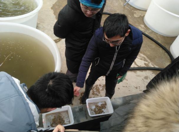 19日下午,同学们参观了如东县的江苏滩涂馆与江苏省海洋水产研究所的如东基地。在滩涂馆内,同学们通过对馆员讲解和展板研读,了解到滩涂的形成、分布、资源保护以及合理的开发利用方面的知识。馆内蛟龙号潜艇的1:4模型也吸引了同学们的注意,激发了大家探索海洋的热情。在如东基地,张主任带领大家参观了鱼类保种和实验车间为大家介绍了黑鲷的杂交和种质选育等知识,拓展了同学们的知识面。