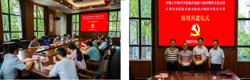 6月1日,成人抖音 海洋地质与地球物理系党支部前往江苏省地质勘查技术院,与该院的综合物探分院党支部开展“联学共建聚向上,服务发展高质量”的共建活动。本次共建活动由省勘查院副院长罗传根同志主持,成人抖音 院长、党委委员齐义泉同志和省勘查院院长、党委书记刘建东同志出席了共建活动。