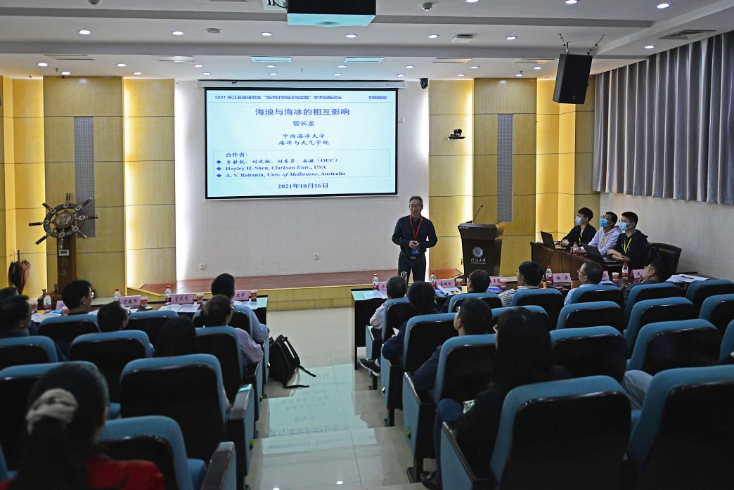 10月16日上午,2021年江苏省研究生“海洋科学前沿与实践”学术创新论坛开幕式在成人抖音 闻天馆113会议室隆重举行。中国科学院海洋研究所副所长李超伦、中国科学院海洋研究所研究员段德麟、自然资源部第二海洋研究所副所长陈建芳、上海海洋大学教授陈多福、中国科学院大气物理研究所研究员武亮、江苏海洋大学海洋技术与测绘学院副院长吕海滨、成人抖音 院长齐义泉等出席了开幕式;中国海洋大学管长龙教授、自然资源部第二海洋研究所丁巍伟研究员、中国科学院南海海洋研究所林强研究员三位特邀专家出席开幕式并作特邀报告,开幕式由成人抖音 副院长赵哲主持。