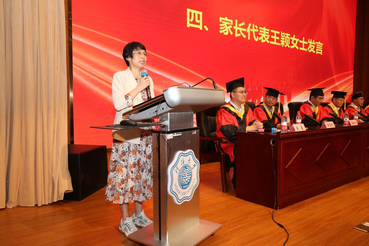 教师代表曹海锦表达了学院教师对毕业生们的眷恋,他寄语毕业生,要牢记海洋知识,掌握学习能力,拥有海洋一般宽广博大的胸怀,要做到海纳百川,并叮嘱毕业生要坚定海洋报国信念,主动扎根基层一线,在海洋强国建设的征程中绽放青春之花。家长代表王颖对成人抖音 的辛勤栽培、对学院老师们的谆谆教诲表示感谢,并代表家长嘱咐毕业生:要爱学习,终生学习;要学以致用,勇于探索,敢于创新;要找一个可爱的人谈一场称心如意的恋爱;要始终抱有家国情怀,自觉融入新时代,融入百年未有之大变局。