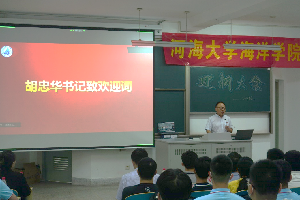 “中国灵魂,全球视野,河海特质”的人才培养目标,并向同学们强调海洋的重要性,提出国家对海洋人才的要求,鼓励同学们用自己的青春力量为国家的海洋强国事业做出贡献,争取跑出当代青年的最好成绩。