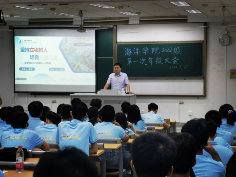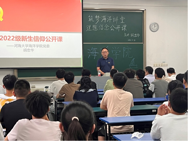 8月31日,成人抖音 筑梦海洋讲堂——2022级新生信仰公开课在江宁校区励学楼110正式开讲。本次公开课是新生启航周中的第一场讲座报告,主讲人为成人抖音 党委书记胡忠华老师。