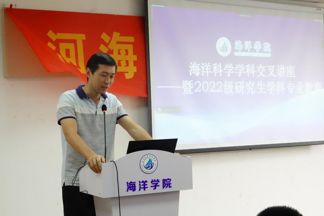 9月8日下午,成人抖音 海洋科学学科交叉讲座——暨2022级研究生学科专业教育在电气馆507会议室如期举行。海洋动力与环境研究所曹海锦老师、姜龙老师,海洋地质研究所张帅老师、研究生辅导员刘彩英及2022级全体研究生新生参加此次会议,成人抖音 部分教师、研究生及本科生在线上同步参与。本次讲座由成人抖音 副院长冯涛主持。