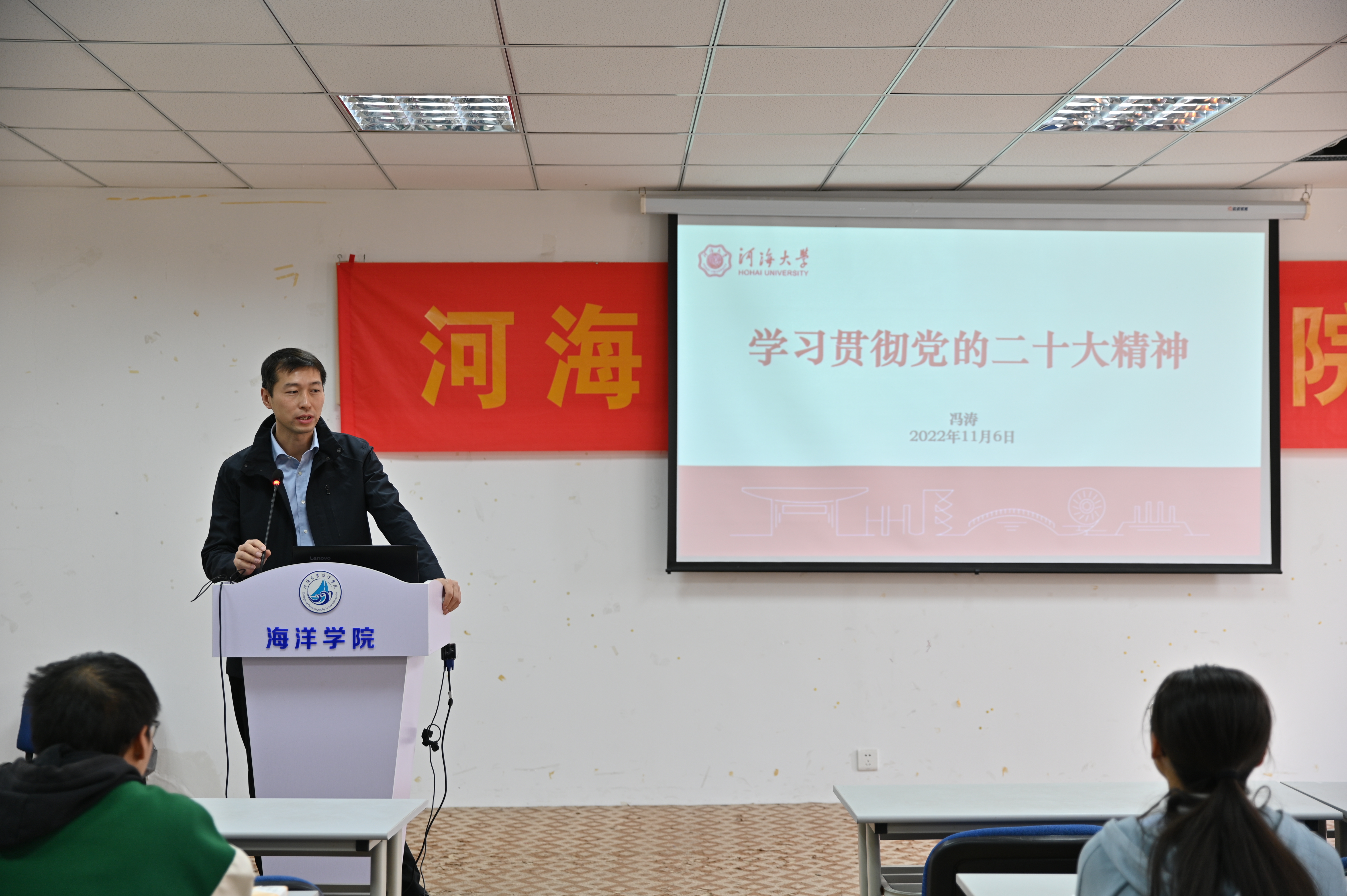 其他院领导也结合学校、学院发展实际,从发展海洋经济、保护海洋生态环境,提升人才自主培养质量、青年的历史使命和时代责任等方面与同学们交流学习体会。
