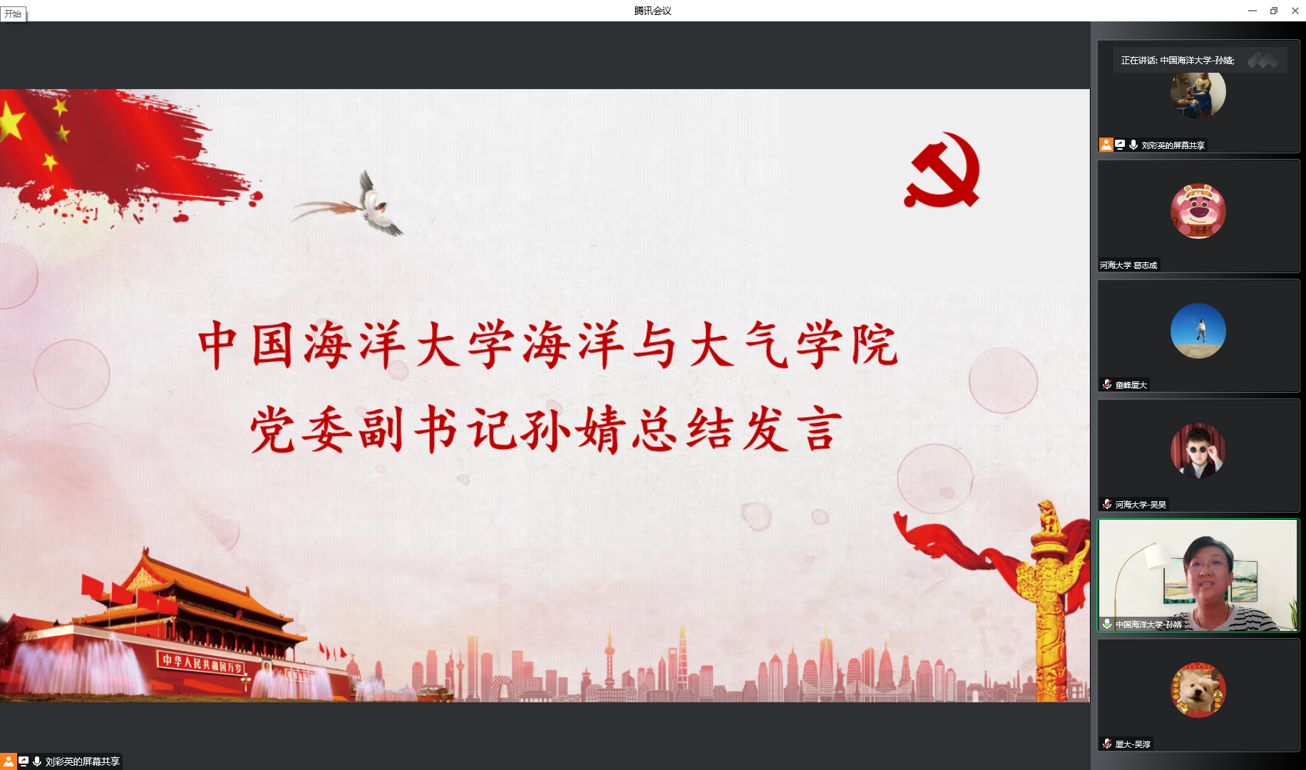 厦门大学海洋与地球学院党委委员童峰、中国海洋大学海洋与大气学院党委副书记孙婧、成人抖音 党委副书记吴昊出席并发言,活动由成人抖音 研究生辅导员刘彩英主持。本次活动由来自厦门大学的陈粮峰与周烁、中国海洋大学的姜勇、成人抖音 的吴磊四位党员先锋分享就业经验,来自三地三校的130余名党员同志参与本次线上活动。