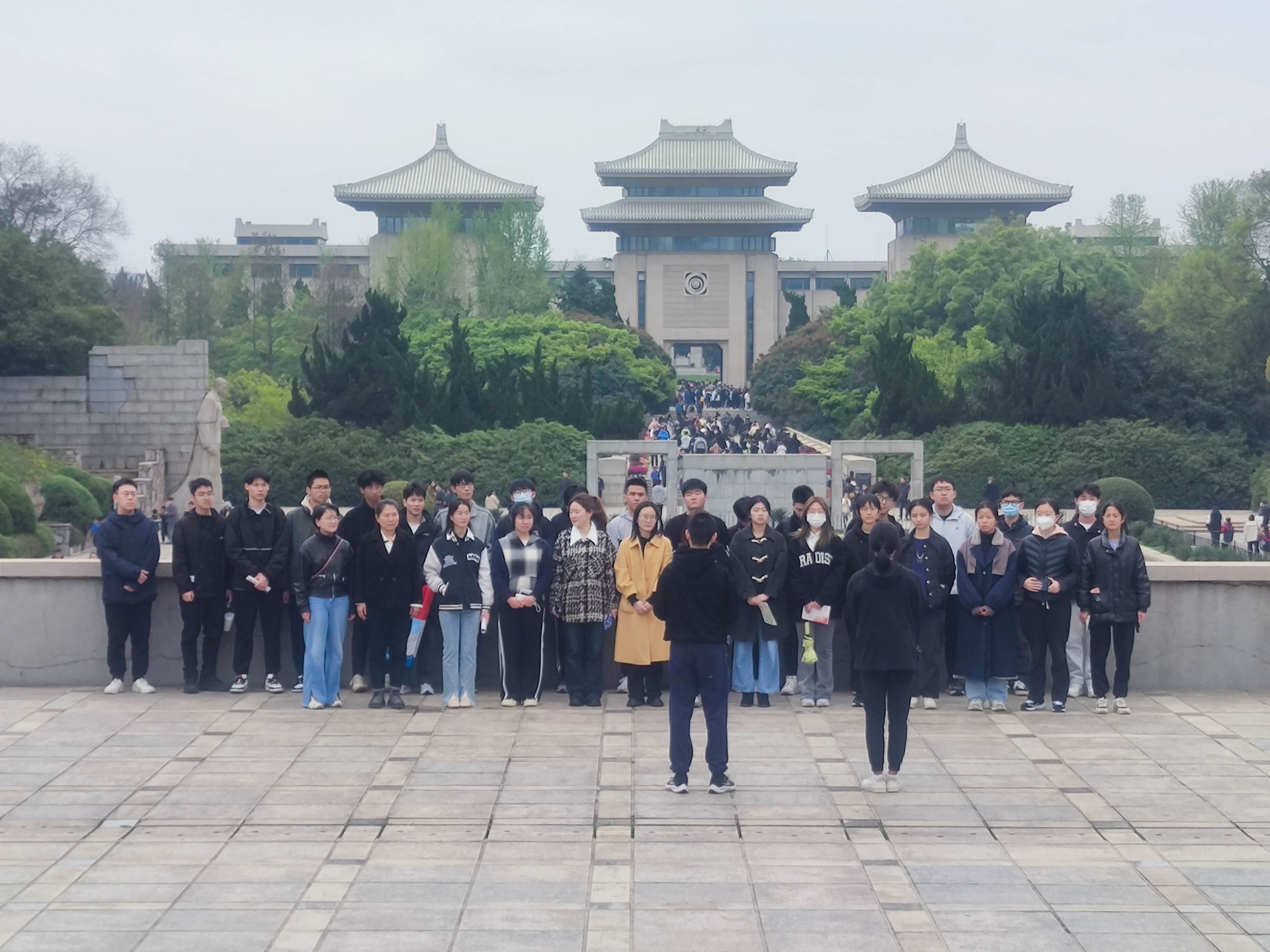 进入陵园,成员们首先感受到的是在传统红色精神的引领下凝结而成的巨大力量,宽敞平整的广场向前延伸,由南京市30万党员捐资建成的忠魂亭巍然矗立,其两侧展示着精美遒劲的忠魂颂浮雕。