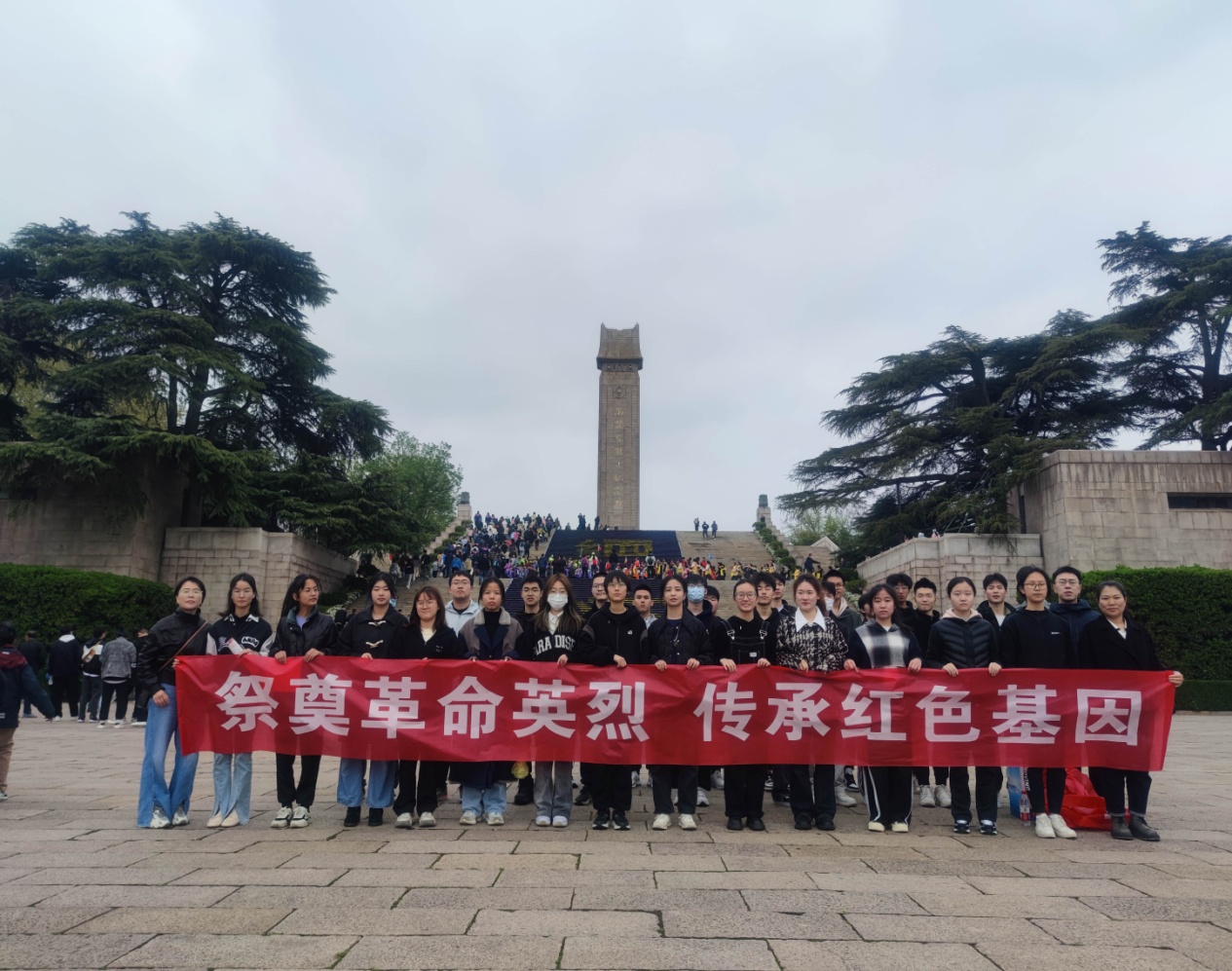 在纪念碑广场,两名同学进行了朗诵,开展有声、有势、有热度的学习教育。刘晓雨、董锋栋分别感情丰富,认真投入地朗诵了散文、诗歌《四月雨花台》,表达了对革命先烈诚挚的怀念与敬仰之情,激励莘莘学子勇往直前。