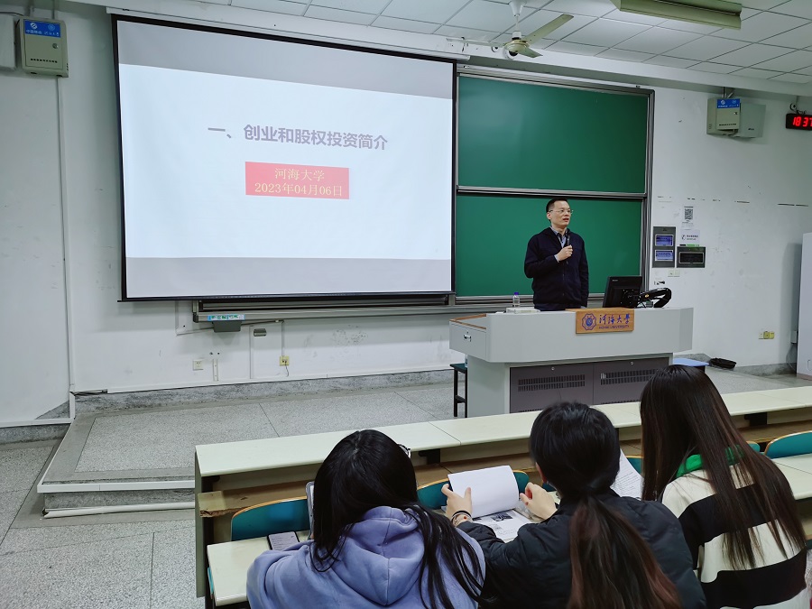 2023年4月6日晚,江苏省沿海开发投资公司副总经理周勇胜博士受成人抖音 邀请走进河海,为同学们开展了一堂关于创业和股权投资的主题报告。