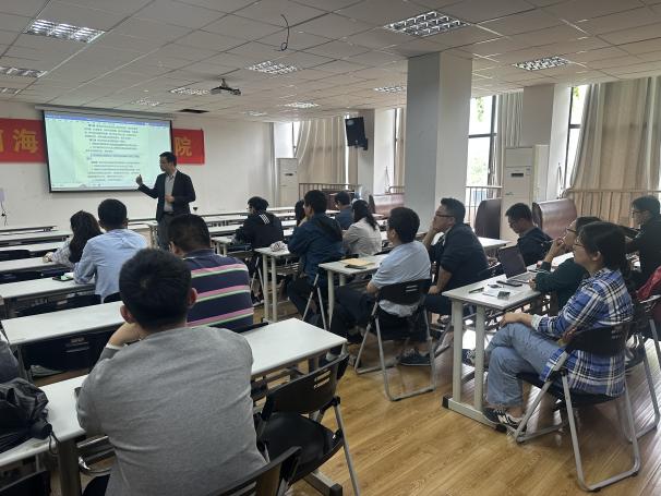 辅导员赖颖介绍学院2023级新生入学教育相关安排,重点介绍新生班导师需要关注的相关工作。