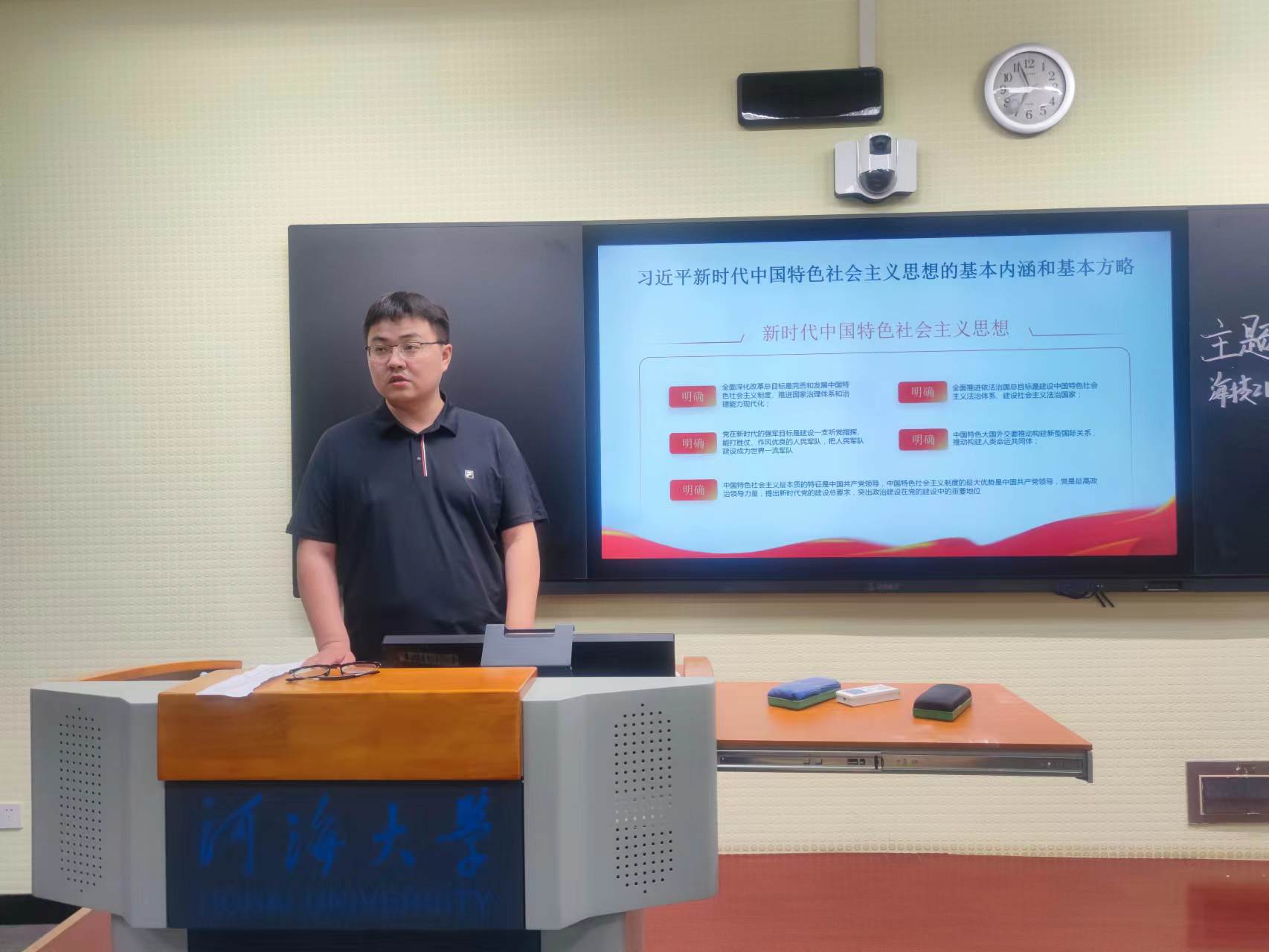6月5日,为扎实开展学习贯彻习近平新时代中国特色社会主义思想主题教育,引导广大青年学生坚定理想信念,坚守初心使命,成人抖音 党委副书记吴昊深入2021级海洋技术一班讲授主题教育专题党课。