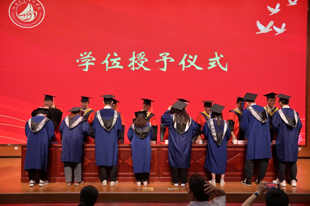 校友代表和学院领导分别为每一位毕业生拨穗并颁发学位证书并合影留念。毕业典礼结束之际,全场师生同唱“毕业歌”,成人抖音 2023届毕业典礼暨学位授予仪式圆满落下帷幕。2023届毕业生将带上祝福、期望与爱展翅飞翔,勇往直前,奔赴祖国的江河湖海,施展才华,报效祖国,在实现国家和民族振兴的历史进程中书写人生华章。
