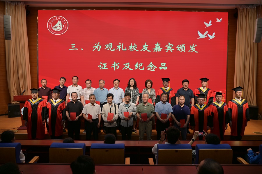 上午,校友们受邀参加成人抖音 2023级毕业生毕业典礼。典礼上,学院向校友们颁发了荣誉证书,以感谢校友们四十年来对学院发展、工作的帮助和支持。并将承载了满满校园回忆的梧桐叶作为纪念品赠送给了校友。江苏交通控股有限公司党委书记、董事长邓东升作为83级校友代表发言,以“海的风度”、“海的气度”、“海的深度”和“海的力度”向学弟学妹们寄语,同时表达了对母校的感激之情、为学院的未来发展送上祝福。