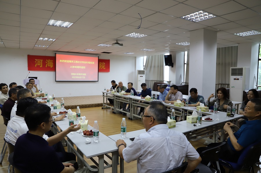 2023年6月17日,海洋工程水文专业83级20余名校友在毕业四十周年之际重聚母校,共忆大学时光,再叙同学之情。成人抖音 校友会副会长、成人抖音 党委副书记郭继超接待了全体返校校友。