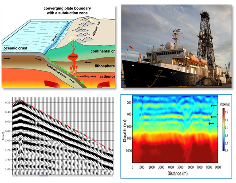 研究海岸带、近海与深海俯冲带活动断裂,构造变形及演化,地震活动特征,服务海洋地质灾害评估。