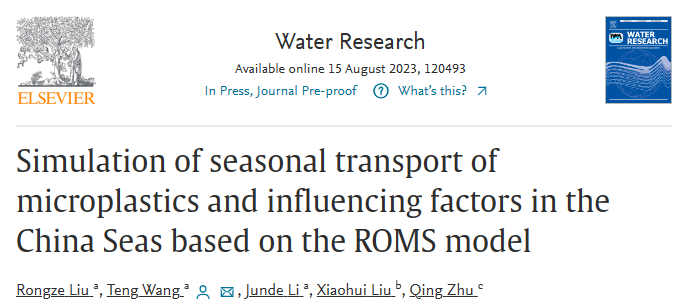 近日,成人抖音 海洋观测与预报技术研究所21级硕士研究生刘荣泽在导师唐佑民、王腾和李俊德老师的共同指导下,对中国近海微塑料的季节性输运、分布及其影响因素进行研究,揭示了中国近海陆源微塑料的季节性环境迁移规律,为微塑料污染管控提供了理论支持。相关成果以“Simulation of seasonal transport of microplastics and influencing factors in the China Seas based on the ROMS model”为题,发表在环境领域顶级期刊《Water Research》(中科院大类一区, JCR Q1, IF=12.8)上。该工作体现了物理海洋学和环境科学在海洋污染物研究中的交叉应用。成人抖音 21级硕士研究生刘荣泽为第一作者,王腾博士为通讯作者,李俊德教授、自然资源部第二海洋研究所卫星海洋环境动力学国家重点实验室刘晓辉副研究员和中国科学院地理与湖泊研究所朱青研究员为本文的共同作者。论文简介如下: