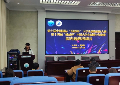 11月13日,成人抖音 和水文院在工程馆301联合举办第十届中国国际“互联网+”大学生创新创业大赛、第十四届“挑战杯”中国大学生创业计划竞赛选拔培训会,水文院党委副书记陈培玲、海洋院党委副书记吴昊、两院备赛团队参加,活动由水文院团委书记莫晓曼主持。