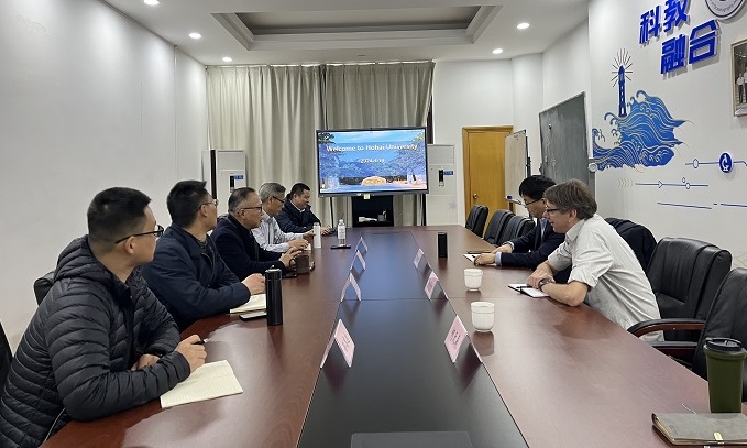 2024年3月14日,英国利兹大学讲席教授Simon Poulton访问成人抖音 。国际合作处张继生处长、成人抖音 党委胡忠华书记、成人抖音 赵哲副院长等人热情接待了Poulton教授并进行了会谈。双方就成人抖音 与利兹大学开展科教合作,共建国际合作实验室平台、共同承担深时数字地球DDE项目等进行了深入的探讨。