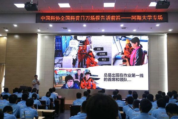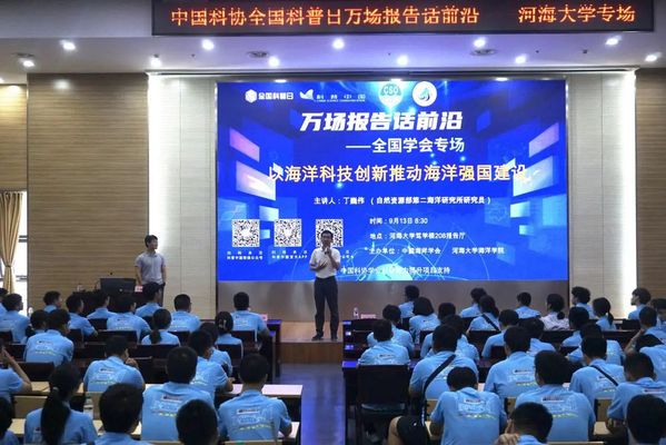 丁巍伟研究员以海洋的表面积为开端,讲述了海洋的重要性以及人们在深海深渊系统、全球气候变化等前沿领域所面临的挑战,深入浅出的告诉同学们海洋在人类所赖以生存的家园中所发挥的重要作用。丁研究员强调,要建设海洋强国,必须要以海洋科技创新推动海洋强国建设。